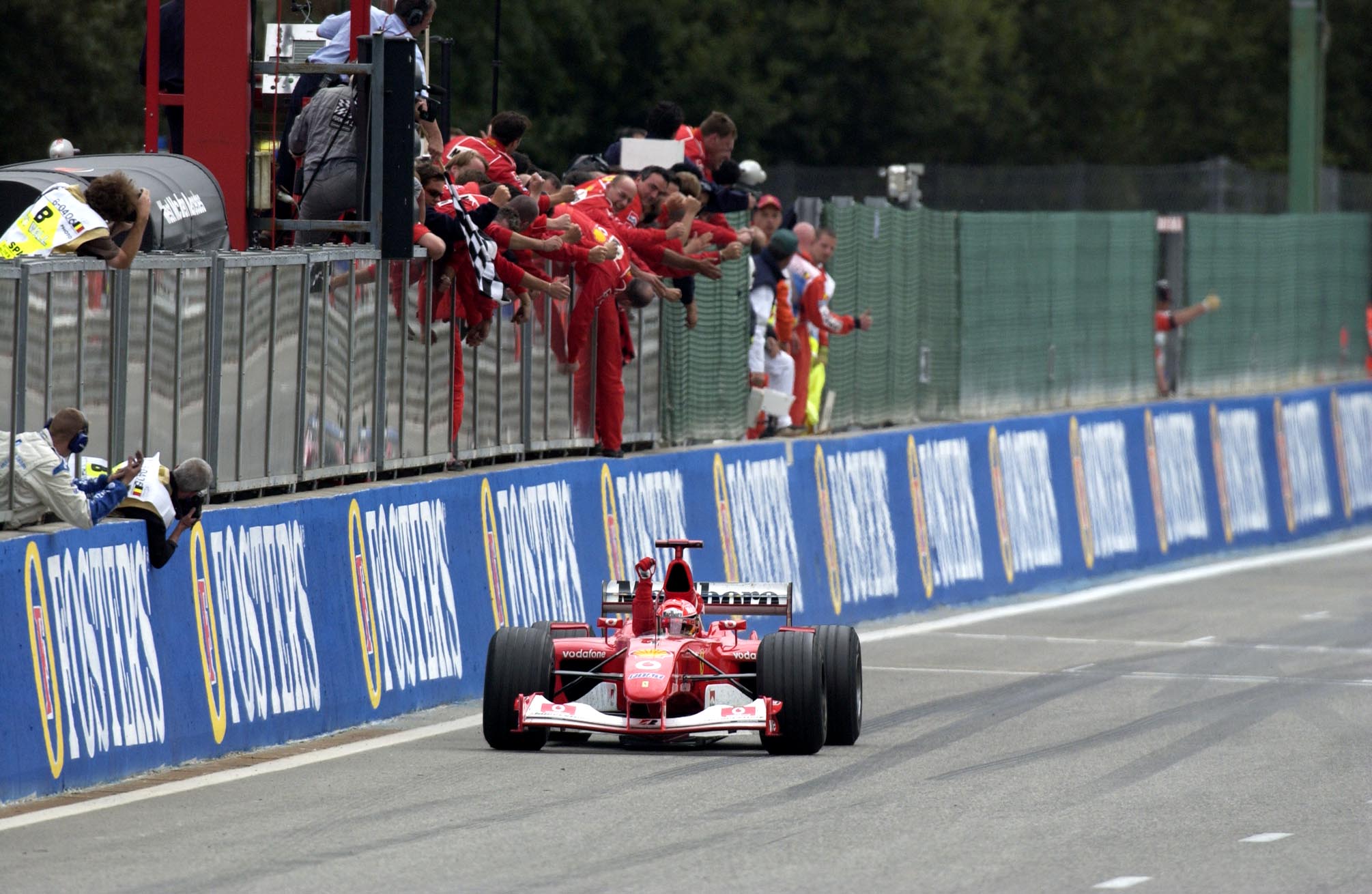 Schumacher a szezon első 14 versenyéből 12-t megnyert, csupán csapattársa, Rubens Barrichello pontjai miatt kellett várnia a világbajnoki cím bebiztosítására. A Belga Nagydíjon meglepetésre Kimi Räikkönen győzött a McLarennel, de a német legenda számára aznap a 2. hely is elég volt.